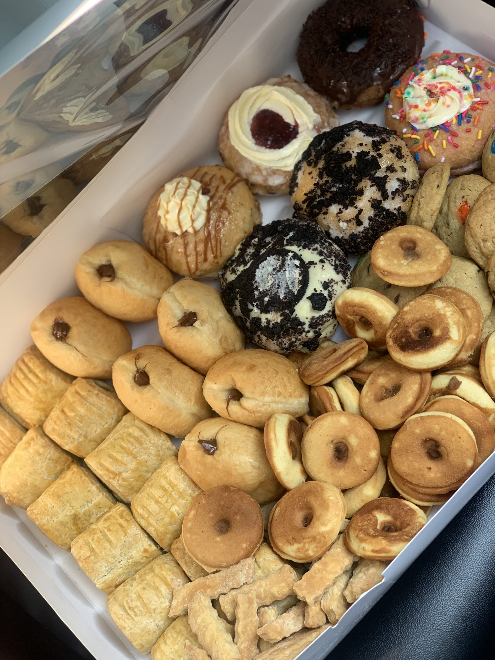 Perfect for personal use and small gatherings and events 12 Brioche Donuts 12 Sausage Rolls 24 Ring Donuts 12 Chocolate Cookies 24 Baked Chips